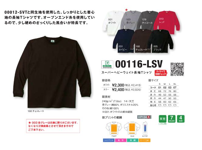 【116-LSV】スーパーヘビーウェイト長袖Tシャツ