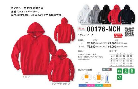 カンガルーポケットが魅力の定番スェットパーカー。 袖口・裾リブ使い。JLからXLまでの展開です。